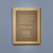 Rich bamboo tones complement a deep bronze aluminum plate, creating a warm and distinguished aesthetic. Fully printable and engraveable, this piece delivers sharp personalization with a classic feel—perfect for honoring tenure, milestones, and meaningful contributions.